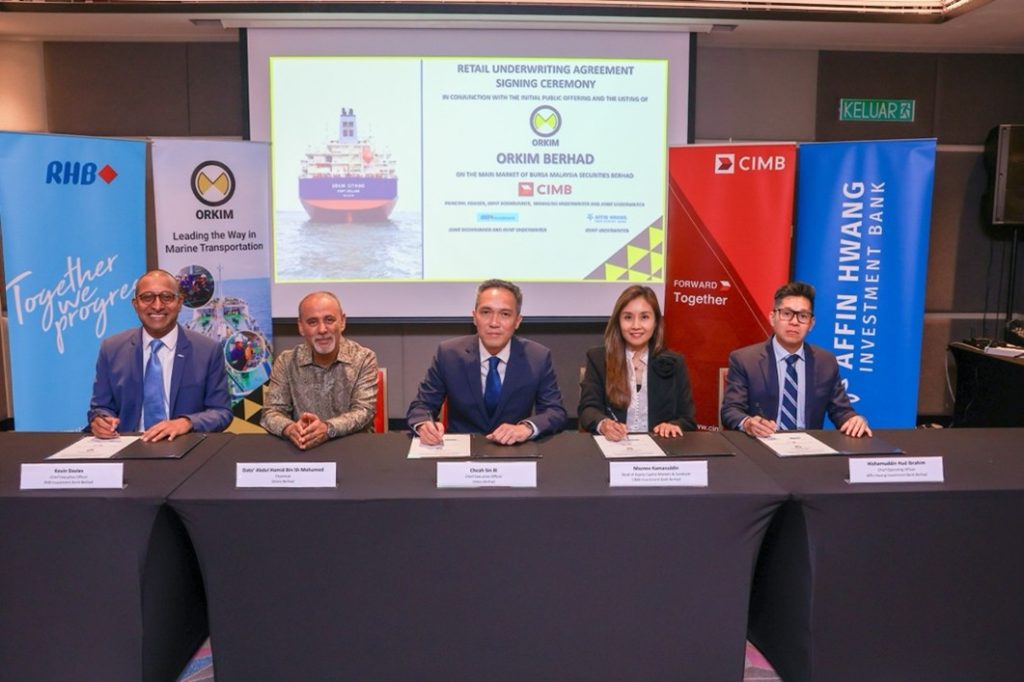 Orkim Berhad (“Orkim”), has signed a retail underwriting agreement with CIMB Investment Bank Berhad, RHB Investment Bank Berhad, and Affin Hwang Investment Bank Berhad for its initial public offering (“IPO”), in conjunction with its upcoming listing on the Main Market of Bursa Malaysia Securities Berhad (“Bursa Securities”) before the end of this year.